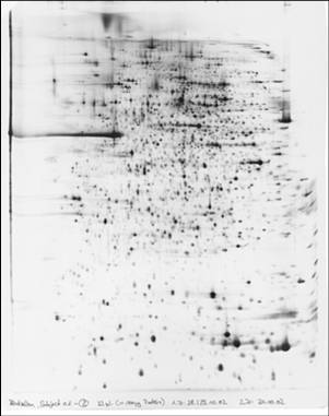 Proteome Factory AG offers extreme high resolution two dimensional electrophresis (2DE) for separation all kind of protein containing samples. Different 2DE gels sizes of 8x7 cm, 23x30cm, 40x30cm and 60x30cm allow the separation of up to 10,000 protein spots depending on gel size and sample in pI range from 3 to 12 and a molecular weigth range from 8kDa to about 200kDa.
